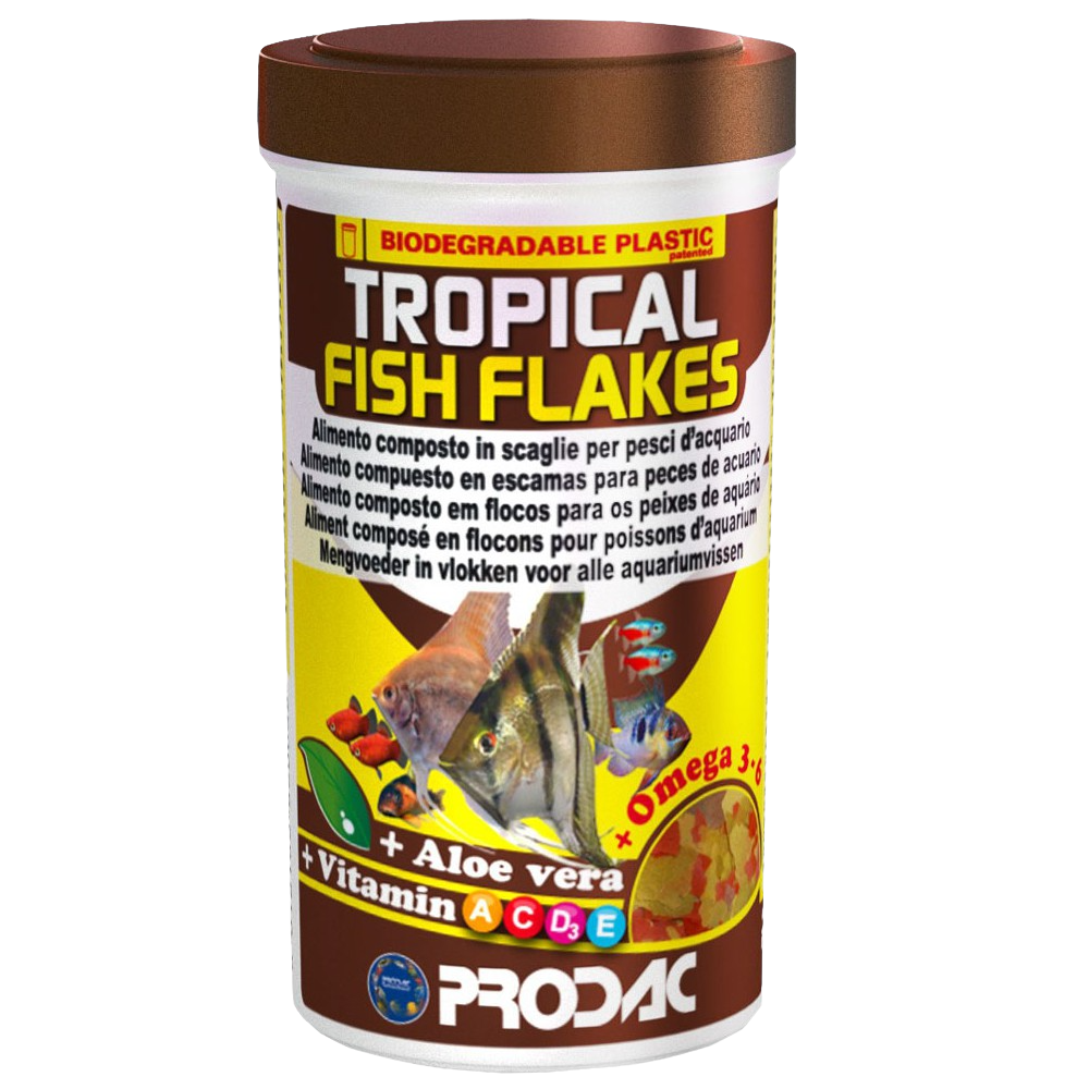 RACAO PRODAC TROPICAL FISH FLAKES 200g Alimento composto em flocos para todo o tipo de peixes ornamentais tropicais. A mistura de diferentes ingedientes de alta qualidade torna este alimento essencial para uma alimentação saudável dos seus peixes. Composição: cereais, peixes e derivados de peixes, soja, fermentos, crustáceos, algas e aloe vera. Perfil Nutricional: Aditivos nutricionais: Vitamina A 41.200 I.U./kg, Vitamina D3 3.000 I.U./kg, Vitamina E 297 mg/kg, Vitamina C 180 mg/kg. Constituintes analíticos: proteínas brutas 44,90%, gorduras brutas 4,47%, cinzas brutas 4,35%, fibras brutas 2,14%, umidade 7,73%, Omega 6 26,41%, Omega 3 13,08% . Dimensões Embalagem: 17,5cm x 10,2cm x 10,2cm 326g Fórmula balanceada que promove saúde, crescimento e cores vibrantes nos peixes.